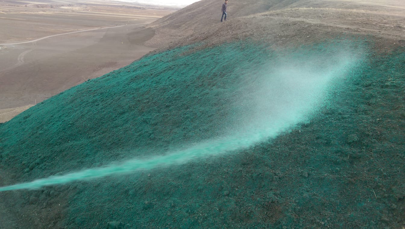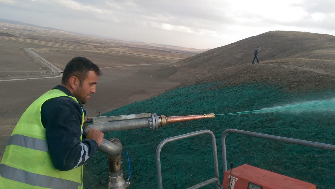 Ekim makine ile yapıldığından çok hızlı olur.Uygulama sırasında gerekli olan her şey karışım içine konur ve bu bulamaçla toprak yüzeyi kaplanır. Bir makinenin günlük kapasitesi yaklaşık 10.000 m2/gün dir.