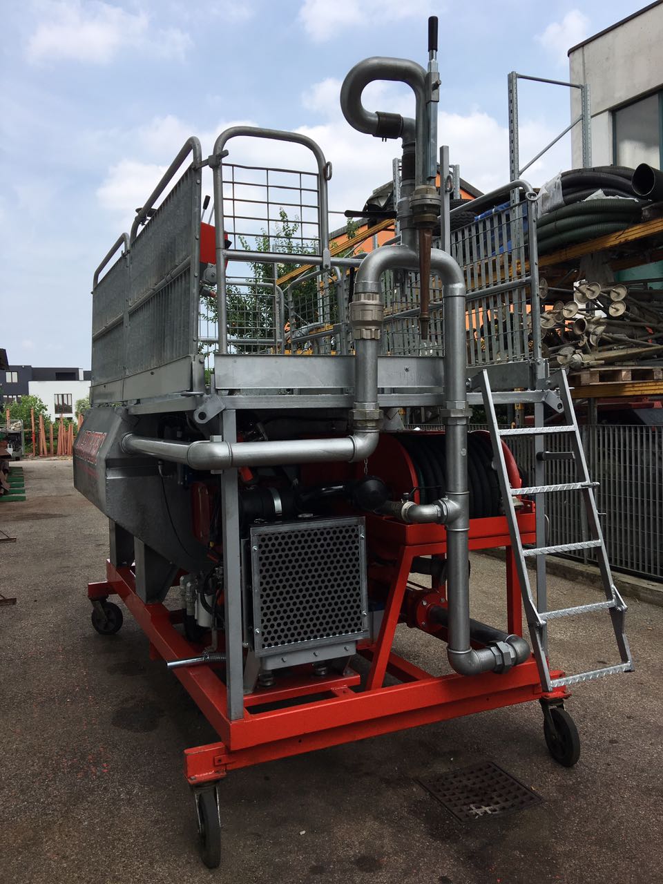 için bir püskürtme makinası ve uzatma hortumları makineye monte edilmiştir.
